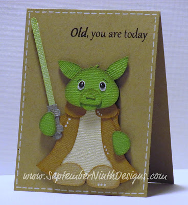 The Yoda svg is from Little Scraps of Heaven's, "The Master" file. I used Make-the-Cut to size him and my Ecraft to cut him out. The Kraft colored twine is from The Twinery.